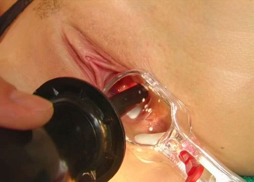 frisky brunette gapes her pussy with transparent medical tool