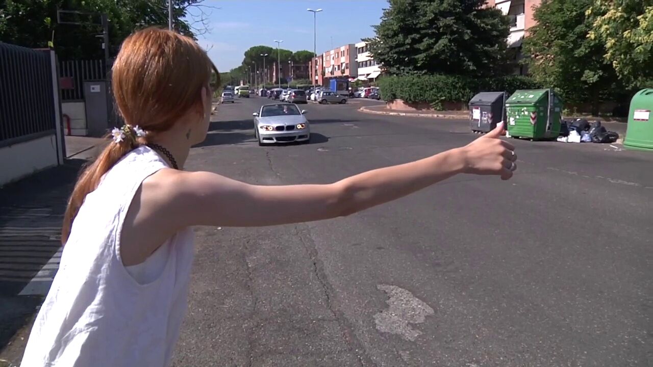 emilia shot risky sex with a beauty fucked in the woods by the car and cum on the ass