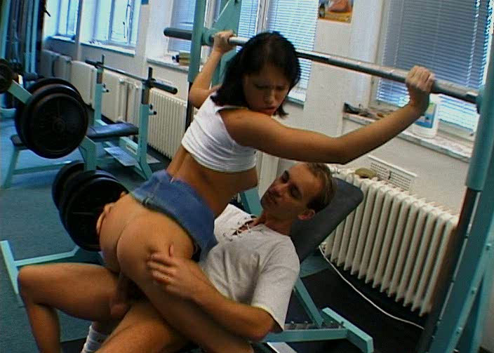 brazen hussy sucking and riding cock fucking in a gym