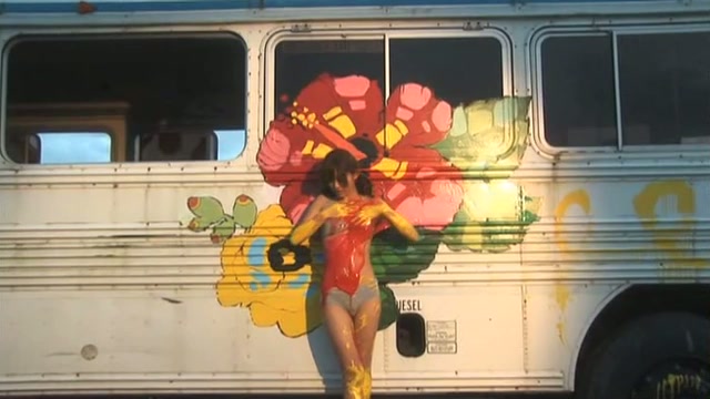 japanese cutie rika sato paints a bus wearing nothing but sexy lingerie